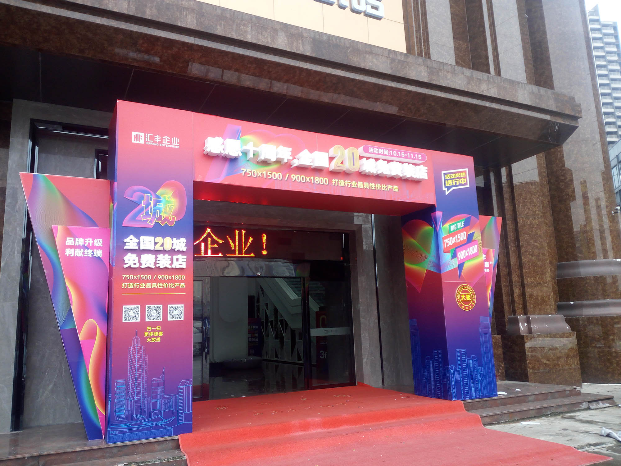 經(jīng)過企業(yè)領(lǐng)導(dǎo)的一致商議決定,本屆陶博會(huì)我們的營(yíng)銷主題定為“感恩十周,20城免費(fèi)裝店”。樓頂廣告,迎賓拱門,所有POP廣告物料等,全部以“20城免費(fèi)裝店”的主題更換一新,這也體現(xiàn)了我們整個(gè)企業(yè)對(duì)終端專賣店扶持力度及政策實(shí)行的決心。