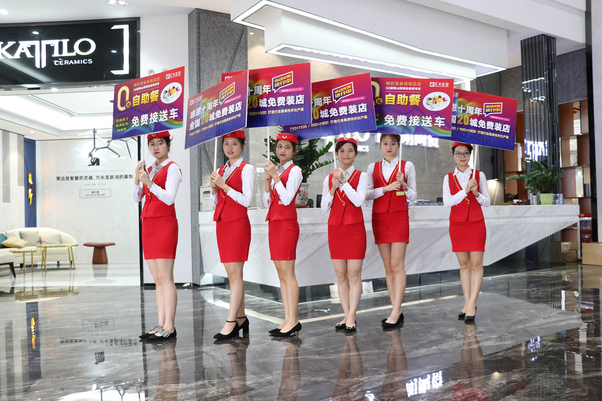 形象是品牌的面子,品牌形象的打造不僅僅是硬件上的投入,更多應(yīng)該表現(xiàn)在人文上。團(tuán)隊(duì)的熱情服務(wù),一個(gè)表情、一個(gè)微笑、一句溫暖的問候、一個(gè)專業(yè)知識(shí)的回答,都無不體現(xiàn)了一個(gè)品牌的綜合形象。本屆陶博會(huì)我們?cè)诠靖鞑块T精挑了一組禮儀服務(wù)隊(duì),主要負(fù)責(zé)10.18-21日四天時(shí)間的迎賓和客戶指引、接送等工作。