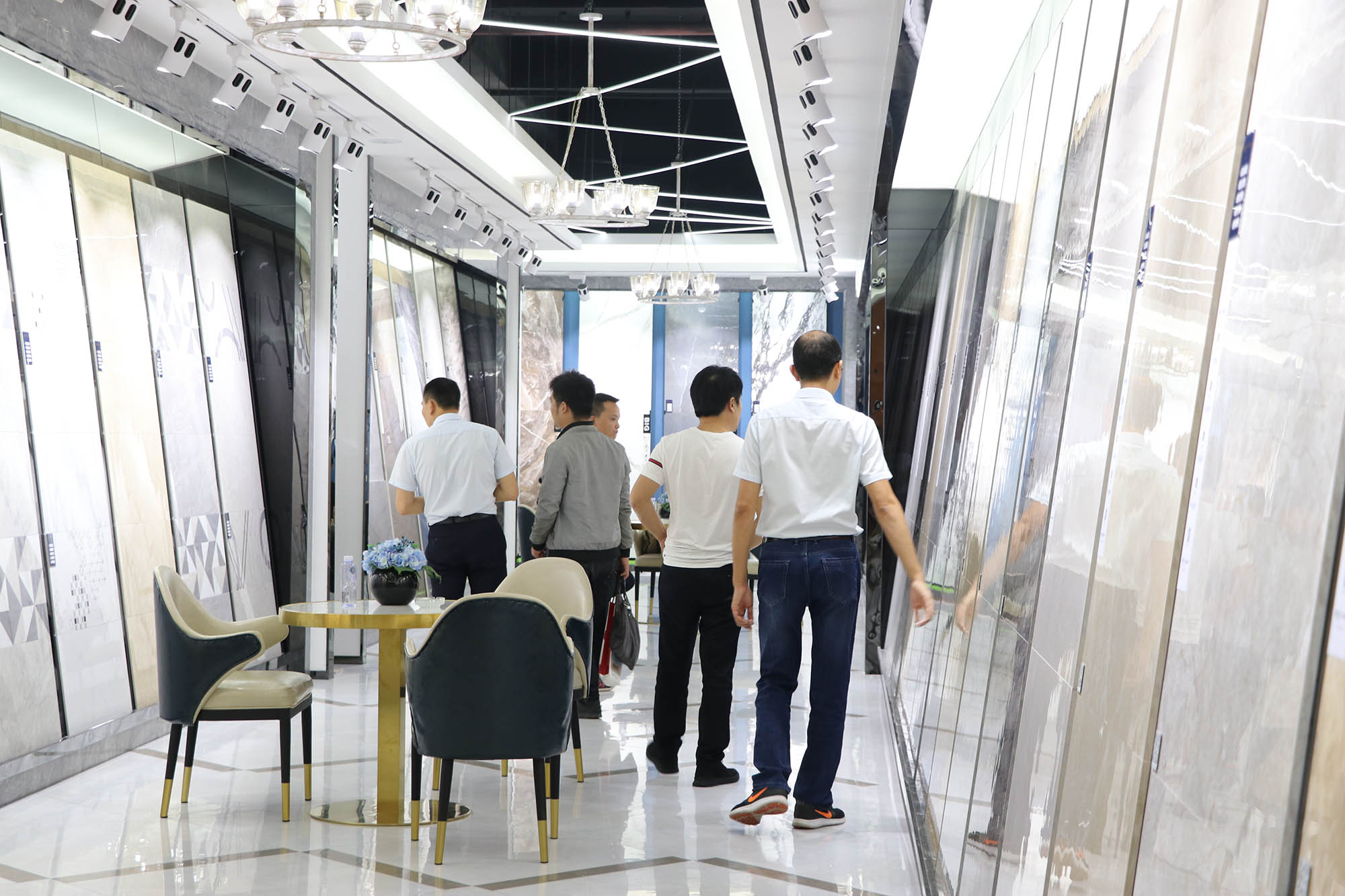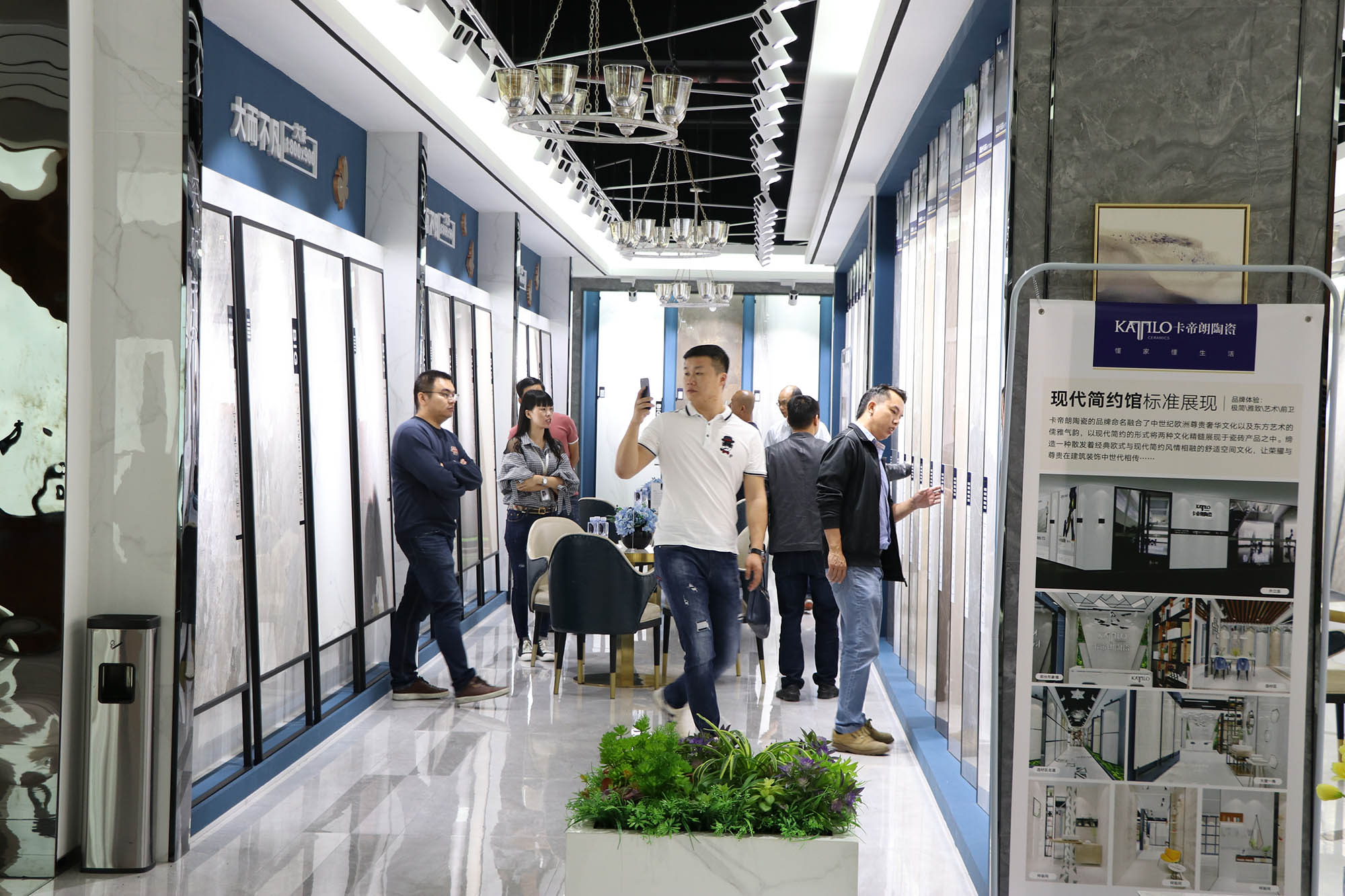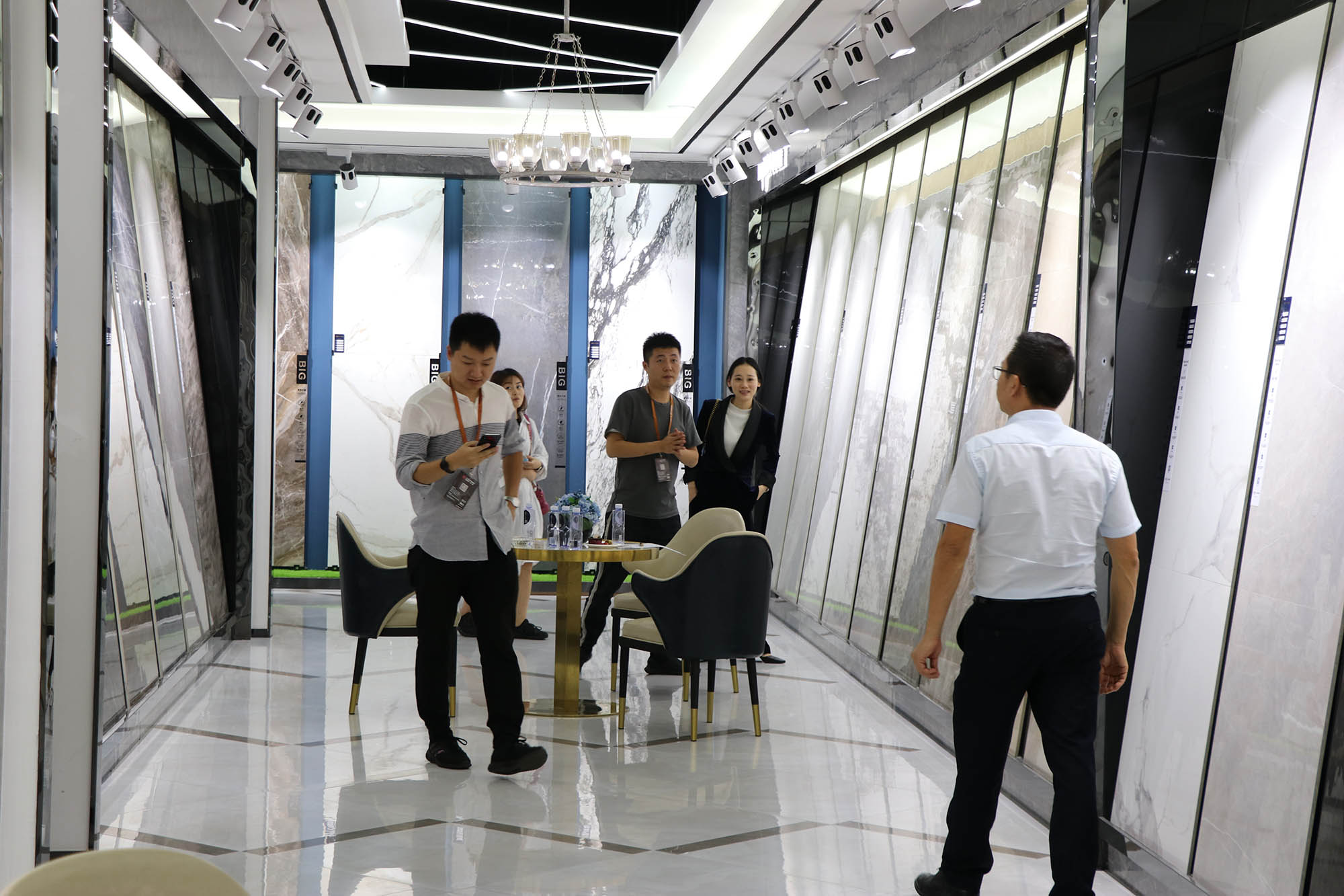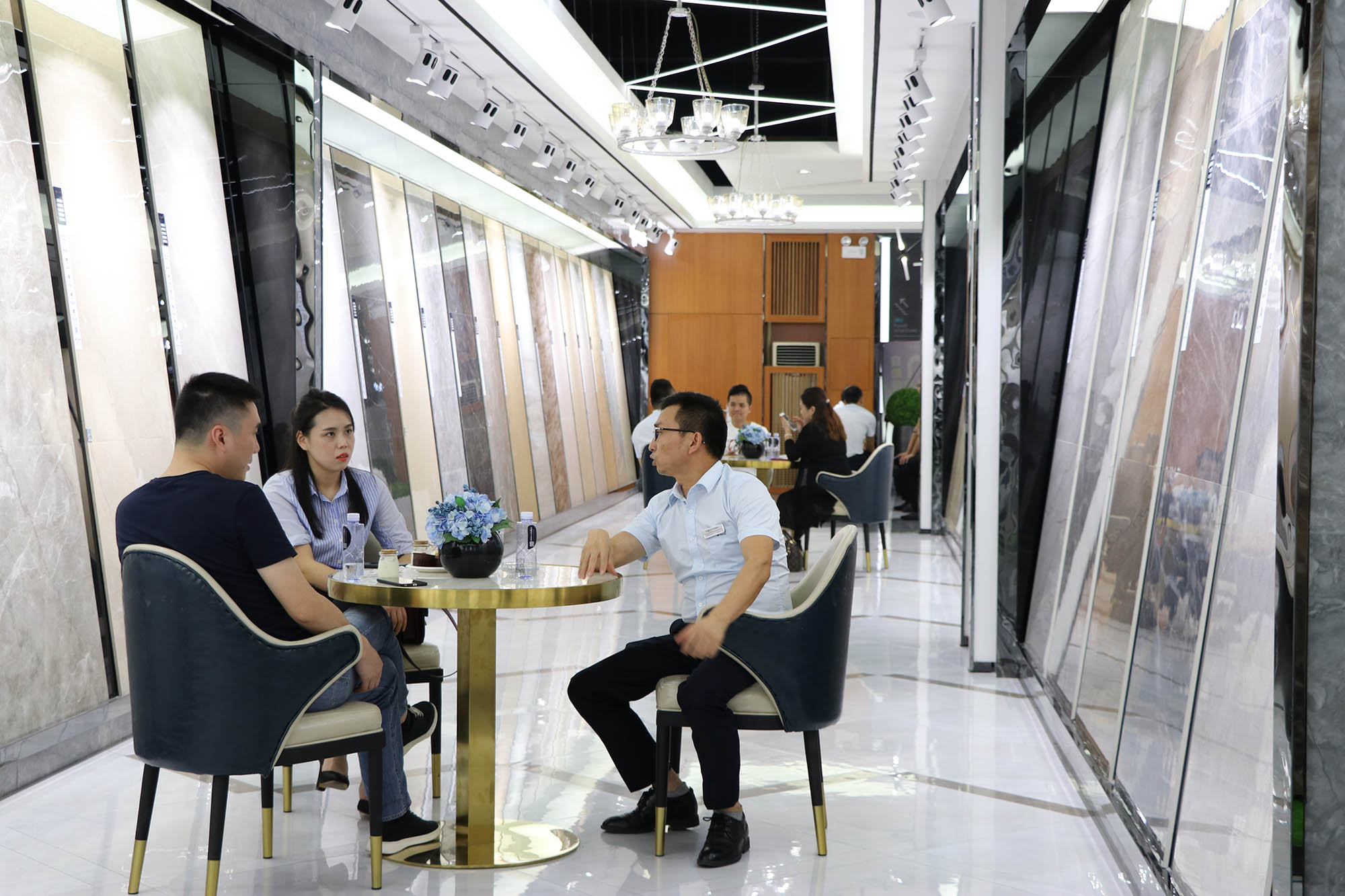 展廳各個(gè)角落人氣暴滿,大家對(duì)卡帝朗全系列產(chǎn)品都表現(xiàn)了極大的興趣。由于來參觀展廳的客人太多,導(dǎo)致洽談桌不夠坐,還好有我們900x1800通體大板打造的三條長(zhǎng)凳解決了“滿坐”的問題。