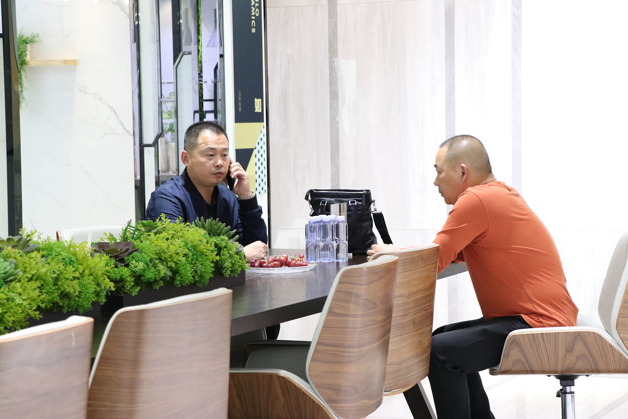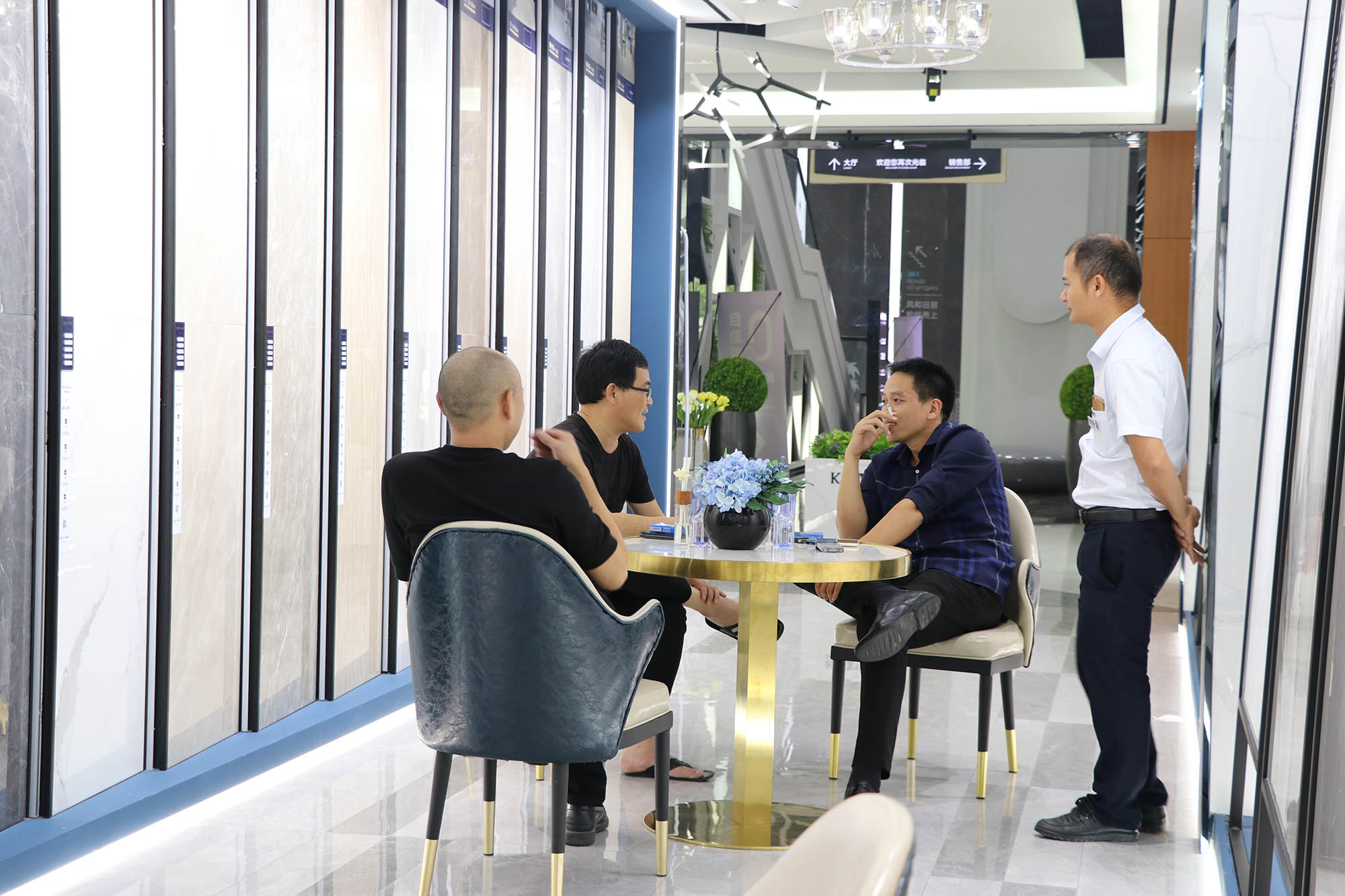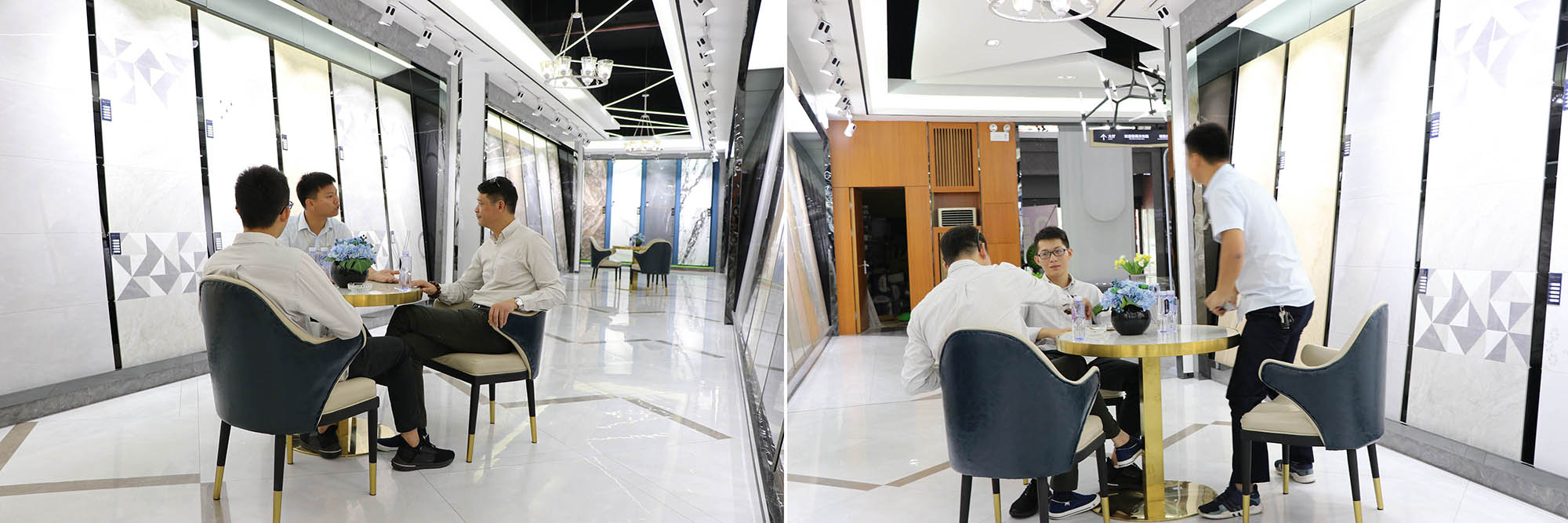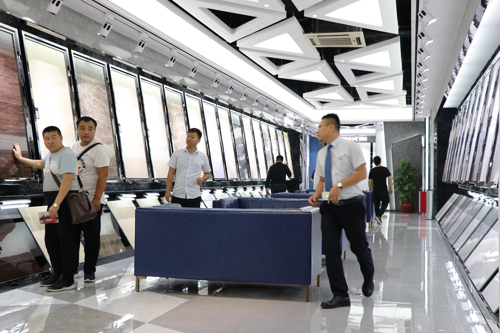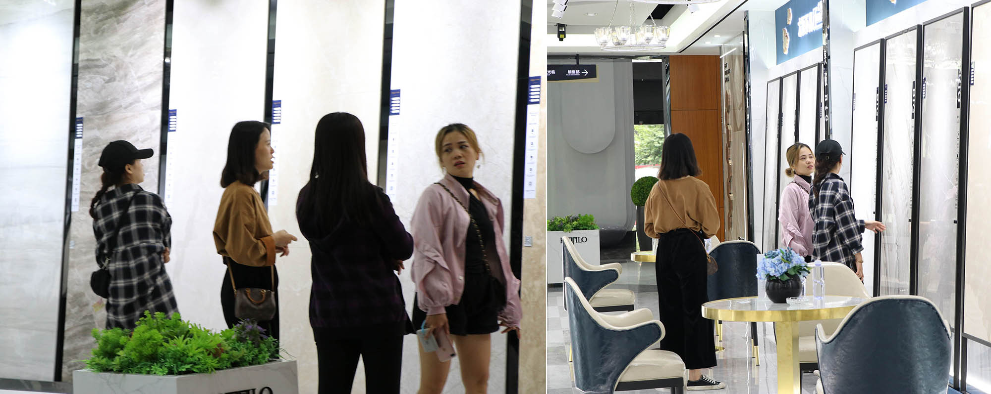 展廳各個(gè)角落人氣暴滿,大家對(duì)卡帝朗全系列產(chǎn)品都表現(xiàn)了極大的興趣。由于來參觀展廳的客人太多,導(dǎo)致洽談桌不夠坐,還好有我們900x1800通體大板打造的三條長(zhǎng)凳解決了“滿坐”的問題。