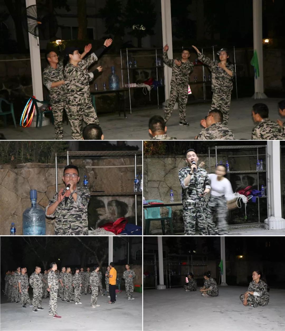 吃過晚飯休息片刻,在教練的號令之下“才藝晚會”拉開帷幕。此環(huán)節(jié)的目的就是要釋放自我,欣賞他人。首先各小組成員跟教練學著來了一段風騷勁十足的廣場舞熱場。因為相機夜景模式?jīng)]調(diào)好,拍得有點模糊。