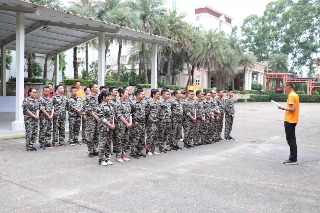 早上九點整,我們準時到達了位于佛山南海丹灶的“祈福拓展基地”。在教練的指引下,換上統(tǒng)一的迷彩服開始了集訓前的熱身活動,揉揉肩、捶捶背、扯扯耳朵、拍拍頭……