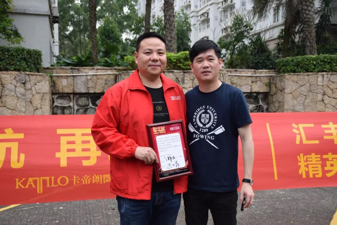 匯豐企業(yè)董事長梁總向卡帝朗品牌經(jīng)理胡總簽授軍令狀并合影