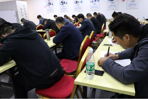 上午進行一輪精彩分享過后,緊接著下午全體銷售人員進行《超越自我》商學(xué)院成立后的第一期銷售知識考試。