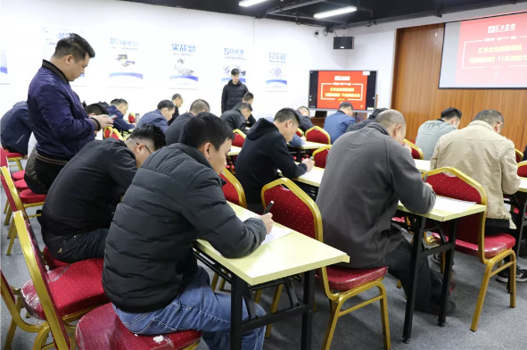 這是檢驗學(xué)員在過后有否認真學(xué)習(xí)的一場考試。30分鐘的現(xiàn)場考試結(jié)束后,卡帝朗陶瓷進行了11月份的銷售總結(jié)。