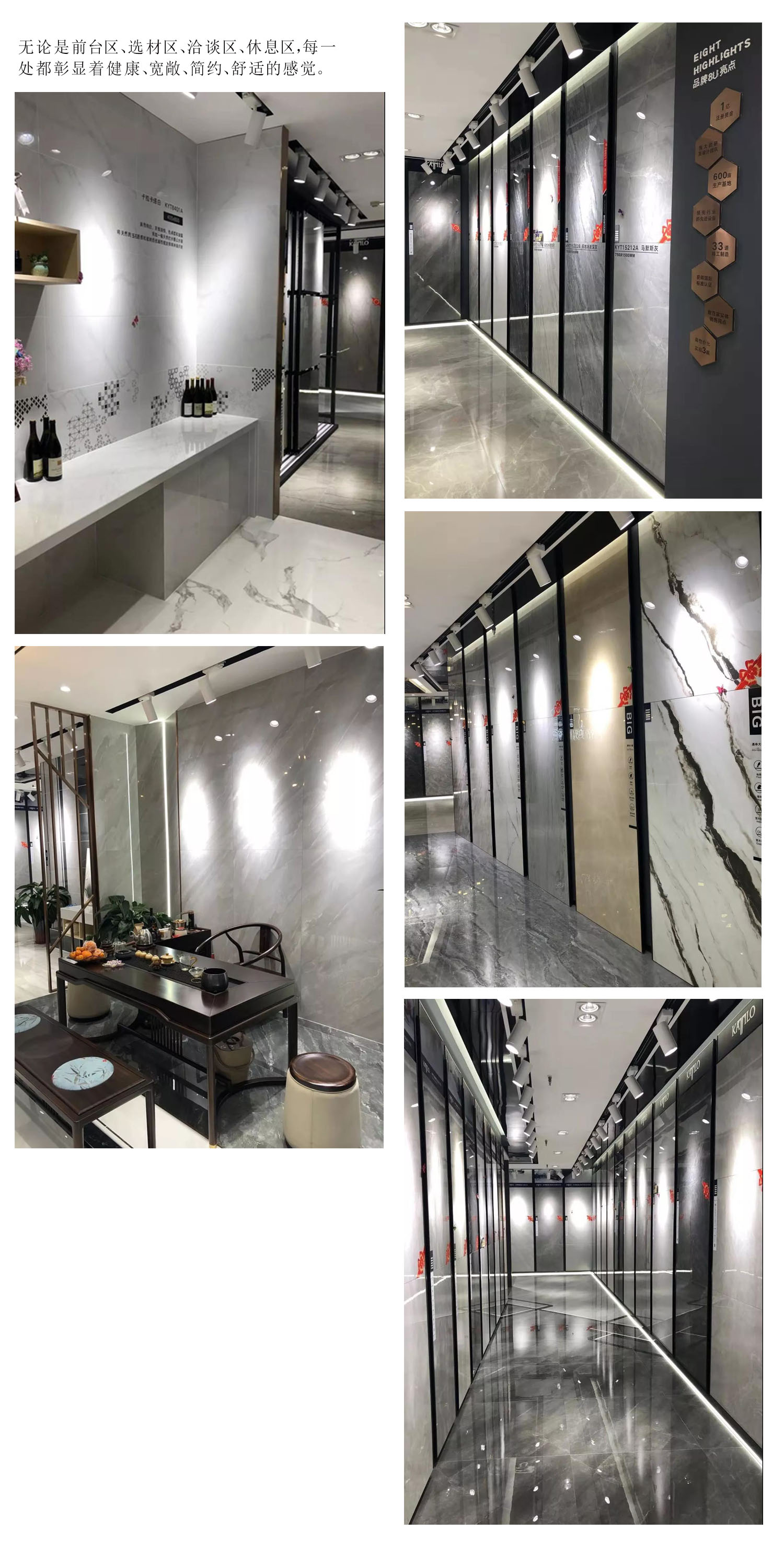 卡帝朗陶瓷河南鄭州旗艦店裝修時尚典雅,產(chǎn)品種類齊全。通體大板瓷磚、通體大理石瓷磚、通體中板、T13加厚通體大理石瓷磚、現(xiàn)代柔光瓷拋磚、大理石瓷磚、瓷片、銀河白、鉆石釉、連紋大板瓷磚等熱銷產(chǎn)品一站式家裝服務(wù),給你的生活空間呈現(xiàn)不為時過的美!