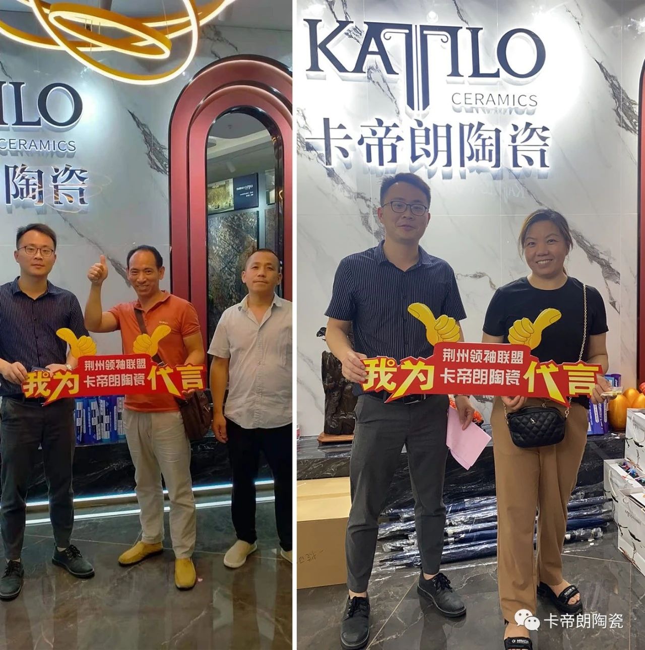 不少客戶朋友在卡帝朗形象墻下合影留戀,紛紛為卡帝朗陶瓷代言打Call!