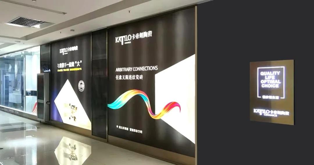 外立面以高清軟膜燈箱制作的廣告形象畫面搭配廚窗設(shè)計,展現(xiàn)了卡帝朗陶瓷的各個品類產(chǎn)品的獨特魅力。
